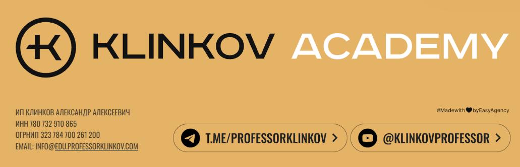 Проект Klinkov Academy создан в октябре 2023 года. Собственником ресурса является некий трейдер Александр Клинков, работающий под псевдонимом Профессор Клинков.
