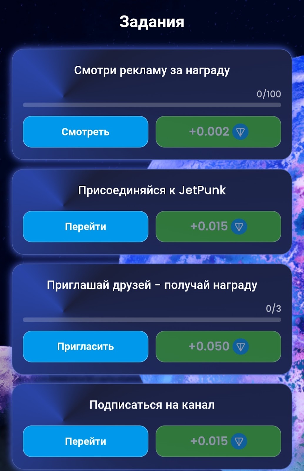 Начать играть можно с 1 TON. Зарабатывать эту валюту можно выполняя задания в игре. Примерные задания выглядят так: