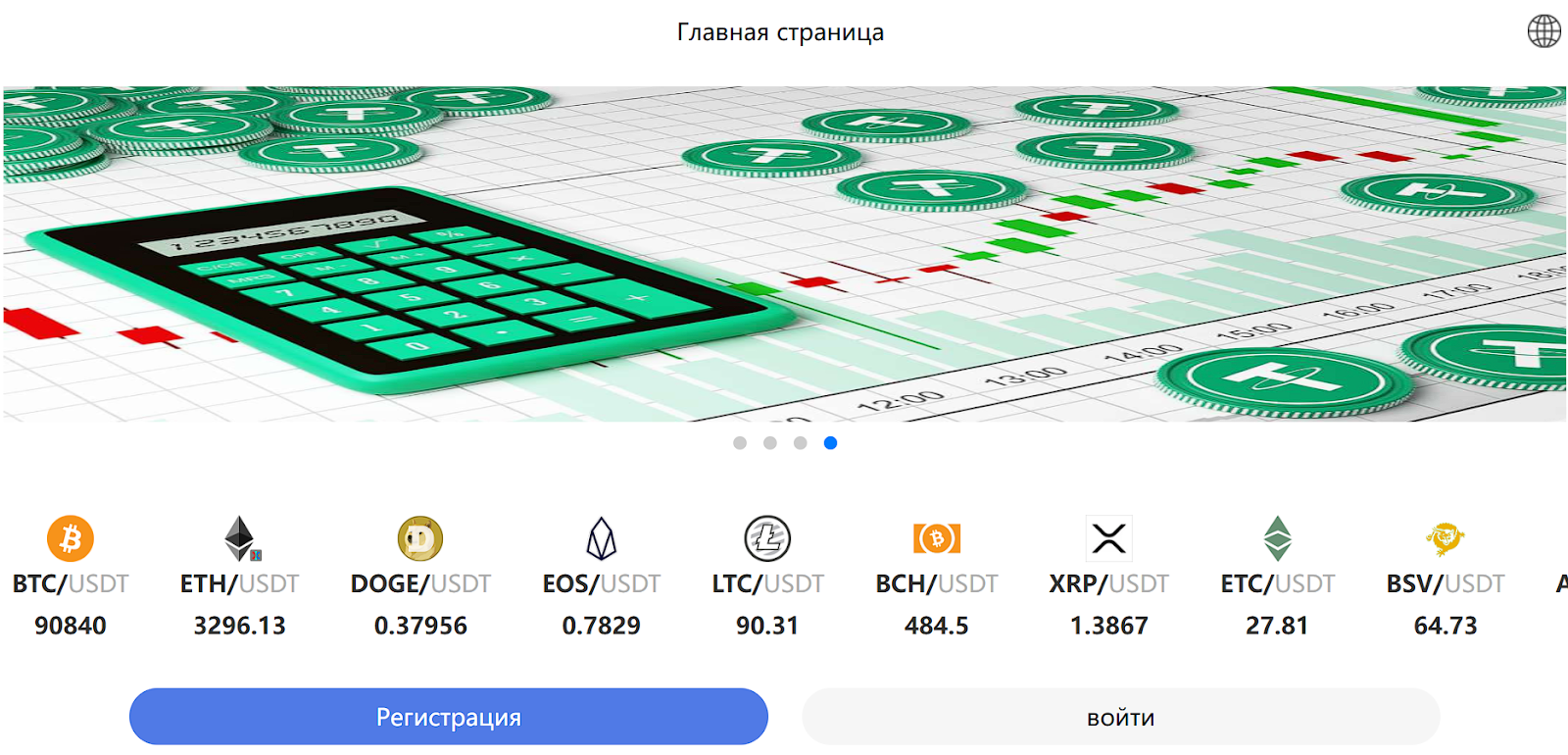 На главной странице опубликованы курсы популярных криптовалют, а также информация об актуальных бонусах проекта. Отметим, что сайт адаптирован исключительно под мобильные устройства, на ПК он выглядит откровенно нелепо.