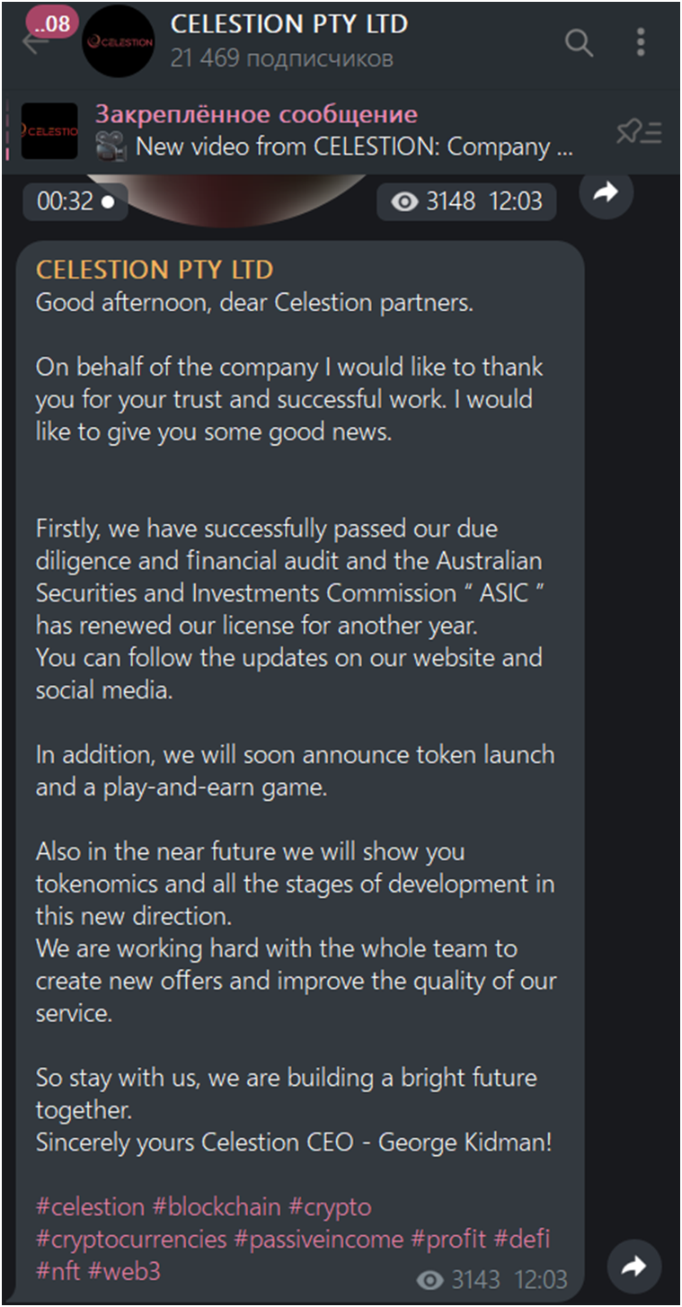 Документов от российского регулятора у проекта для инвестиций Celestion нет, что заставляет сомневаться в легальности его работы.