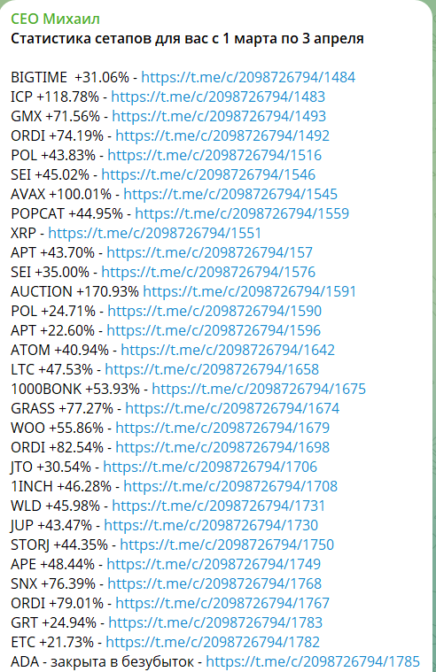 «Ceo Михаил» — канал в Телеграм, который ведёт трейдер Михаил Волошенко. Мужчина занимается торговлей криптой и заявляет, что его капитал составляет около 1,7 млн долларов. Однако эта информация ничем не подтверждена. В сообществе @Ceo_misha он проводит марафоны по торговле на бирже BingX и делится бесплатными сигналами.