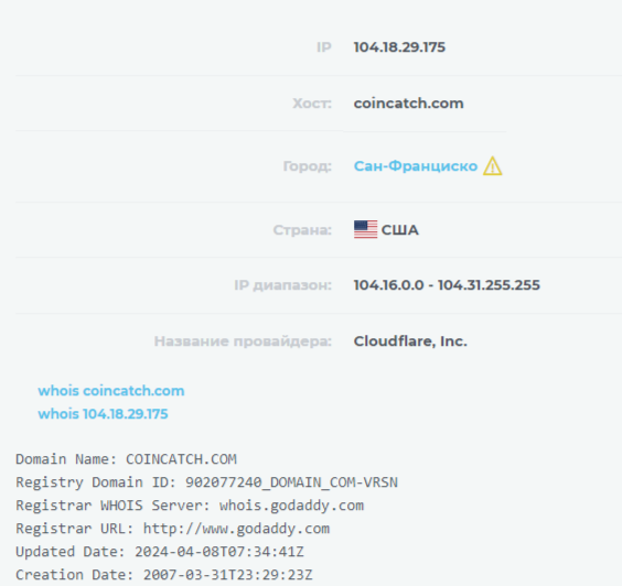 Из-за такой несостыковки мы решили проверить еще и характеристики домена. Оказалось, что он был зарегистрирован в 2007 году. Похоже, авторы перекупили чей-то адрес, либо ранее у них здесь находился другой проект.