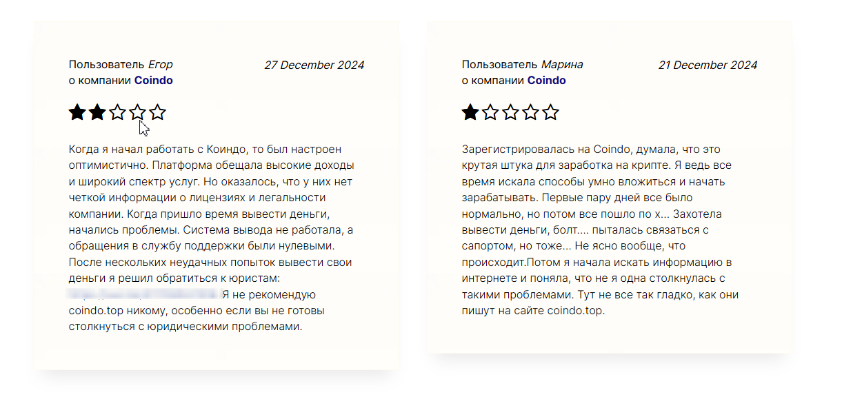Отзывы о coindo top