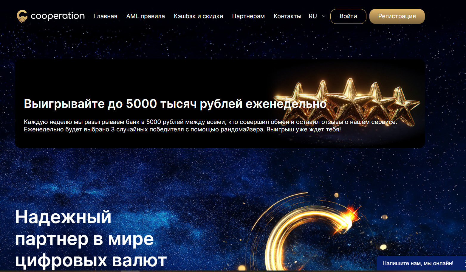 Cooperation – обменник с небольшим стажем. Платформа функционирует всего три месяца. Сервис разработан в России, однако помимо русского, он также поддерживает английский язык. Очевидно, владельцы нацелены на другие аудитории. Сейчас обменник только развивается и привлекает к себе аудиторию. Поэтому он регулярно проводит розыгрыши денежных призов. Пользователи могут раз в неделю в нем участвовать и выигрывать три приза по 5000 рублей. Причем отклики пользователей в сети уже подтверждают, что сервис выплачивает эти деньги.
