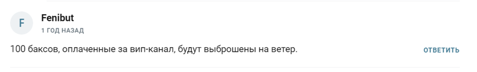 Много комментариев посвящено и платной услуге трейдера – вступлению в приватный канал. Один из клиентов пишет, что это напрасная трата и денег, и времени.