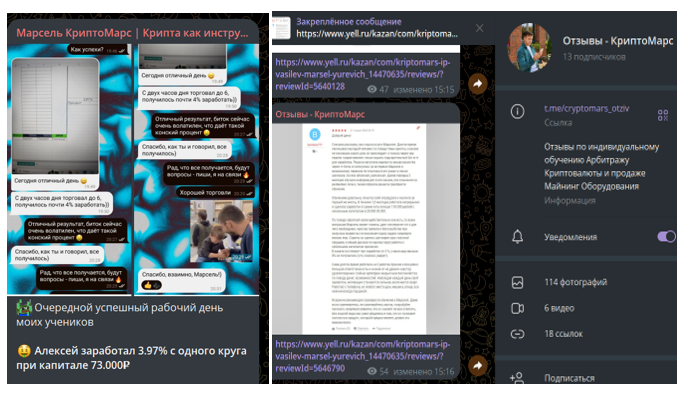 В основной группе Марсель выкладывает скрины переписки и таблиц с доходами. Пользователи «рассказывают» о высоких прибылях, простоте заработка на арбитраже. В таблицах стоят большие цифры заработка. Но верифицированной статистики нет. Без доказательств такие «отзывы» остаются простыми картинками.