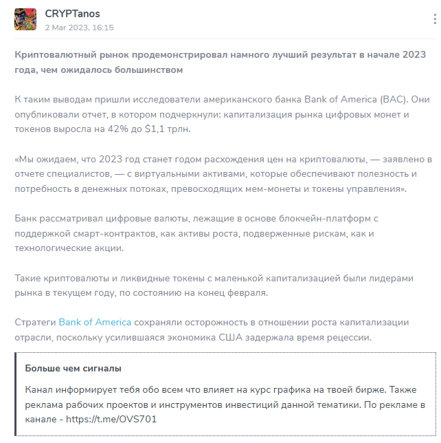 Вся лента канала в Тг «Криптанос» была построена на двух вещах: перепечатках чужих новостей и агрессивной рекламе. Новостной контент представлял собой базовый дайджест событий из мира крипты.