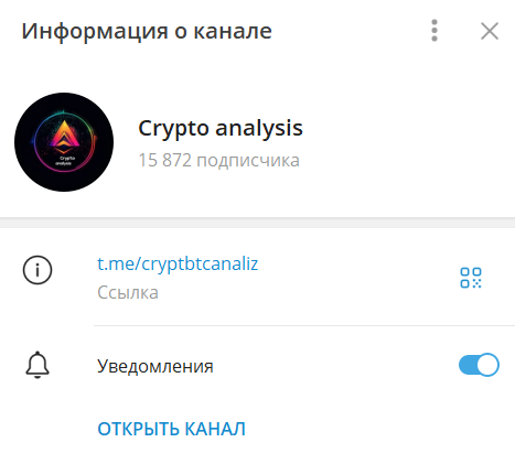 Crypto Analysis — Telegram-канал, посвящённый анализу рынка криптовалют. Подписчики ресурса обсуждают тенденции рынка, делятся биржевой информацией и анализируют актуальные котировки.