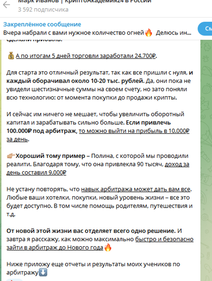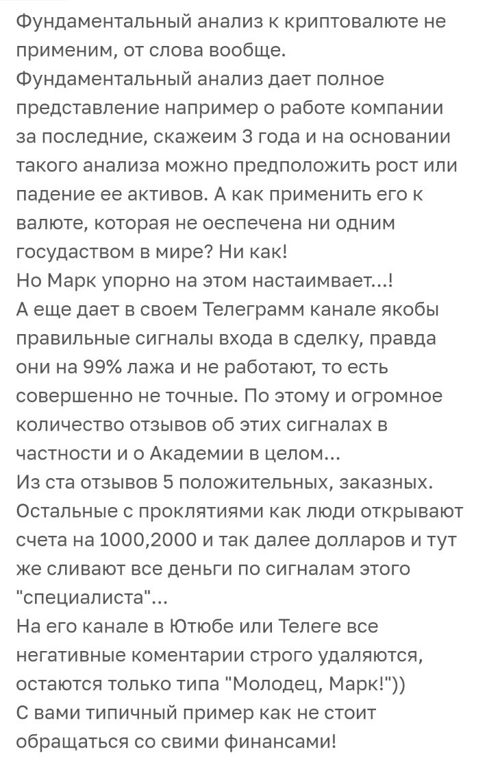 Мы не советуем платить за обучение в криптоакадемии – нет никакой гарантии, что такая инвестиция окупится и принесет прибыль. Если вы торговали по сигналам Марка или прошли арбитражный практикум, просим вас оставить свой отзыв в комментариях.