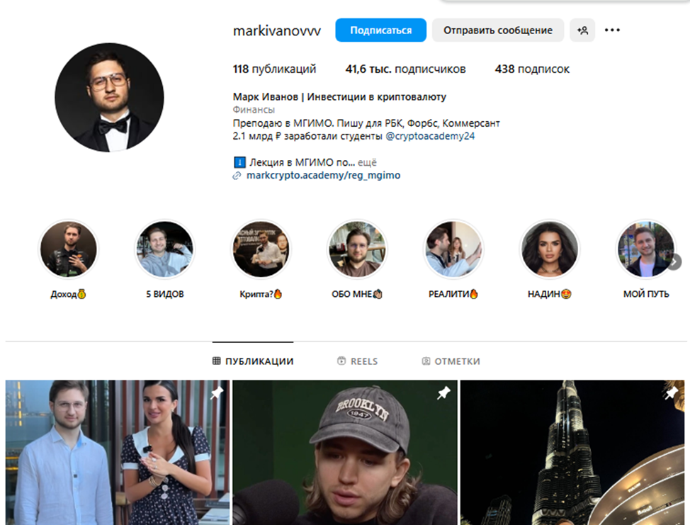 Инстаграм-профиль Markivanovvv перестал публиковать новые посты с апреля 2024 года, накануне открытия криптовалютной академии.