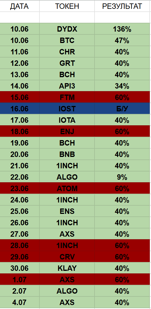 Периодически трейдер приводит статистику, в которой показывает высокий уровень заработка. При этом как-либо верифицировать такую информацию не представляется возможным. Для повышения доверия на канале приводятся ссылки на Google Doc с указанием успехов в торговле, но большого доверия они также не заслуживают. В таблице автор указывает токен для инвестирования, дату и результат. Нет никаких сведений, как проходила сделка, моменты входа и выхода, маржа и т. д.Все предложенные сигналы на канале Крипто Калт полностью бесплатны. Трейдер утверждает, что на безвозмездной основе обучает новичков и регулярно делится прибыльными сигналами. Все, что необходимо — перейти по реферальной ссылке BingX. После входа необходимо зарегистрироваться и пополнить баланс на рекомендуемую сумму. Дальше остается следовать инструкциям трейдера и торговать.