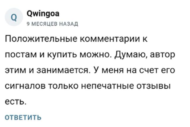 В интернете представлено немало комментариев, в которых подписчики проекта обвиняют админа канала в тг в воровстве контента. Люди в негативном ключе писали о трейдере и говорили, что специалист делился обзорами и аналитикой, которые размещались и в других изданиях и на каналах.