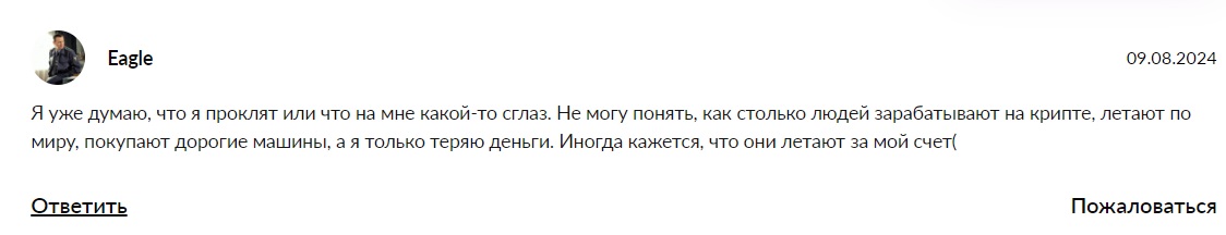 Crypto Devils не имеет отзывов от довольных инвесторов, более того, в Сети есть множество откликов, где деятельность канала называют лохотроном, а сигналы наставника — ложью. По этим фальшивым рекомендациям невозможно не только достичь финансового успеха, но даже вернуть свои деньги. Мало того, авторы сомневаются, что Андрей обладает профессиональными знаниями и практикой трейдинга, как указывалось в первых постах на канале, скорее, аферист просто копирует чьи-то советы и заманивает в приготовленную ловушку неопытных новичков.