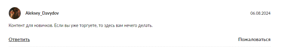 Кто-то позиционирует его контент как информацию для новичков, бесполезную для людей, уже занимающихся торговлей.