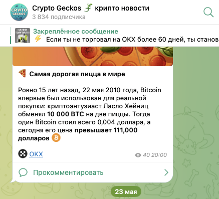 Основатель тг-канала «Crypto Geckos крипто новости» не просто рассказывает о событиях в области децентрализованных финансов, но и призывает торговать на бирже OKX. Мы решили выяснить насколько большого доверия заслуживает автор данного проекта. Для этого собрали и изучили всю важную информацию о его работе.