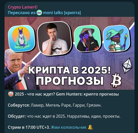 Неизвестно, какие успехи в плане инвестиций имеет сам автор ТГ КриптоЛамер: он не публикует отчеты, нет информации о его инвестпортфеле. Но не гарантий прибыли не раздает, не просит повторять за ним его сделки, поэтому может ничего не доказывать.
