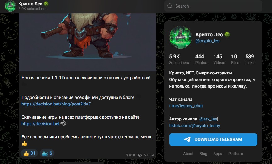 Обзор и отзывы о ТГ канале «Крипто Лес»: обучающий контент и продвижение крипто проектов