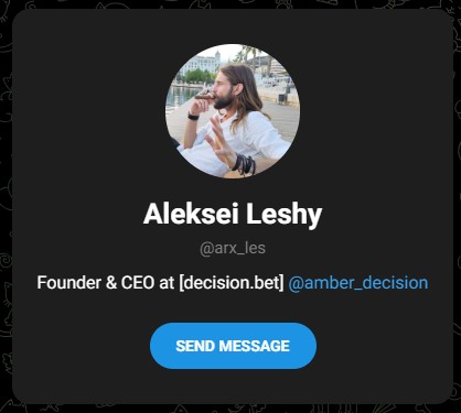 Самое же интересное, что Aleksei Leshy не просто рекламировал новую «игрушку». Судя по его личному профилю @arx les, он является одним из основателей и даже CEO платформы decision bet. То есть канал «Крипто Лес» по факту был его ручной воронкой для «прогрева» аудитории и привлечения денег в собственный проект. Автор не давал объективную оценку, а целенаправленно шиллил игру и лишь прикрывался маской независимого «эксперта».