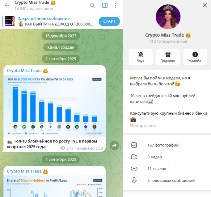 Обзор телеграм-канала Crypto Miss Trade, анализ деятельности и отзывы о проекте «Крипто Мисс Трейд»
