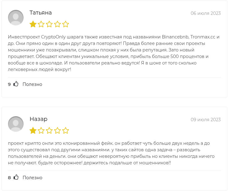 Именно здесь всплывают названия Binancebnb и Tronmax cc. Упомянутые проекты — родные братья старой версии Crypto Only, которые запустила одна и та же группа мошенников. Как только старый бренд собирал пул негативных обзоров и попадал под блокировки регуляторов, администраторы просто меняли название. Инвесторам важно понимать главное: за всеми этими разными именами стоят одни и те же люди.