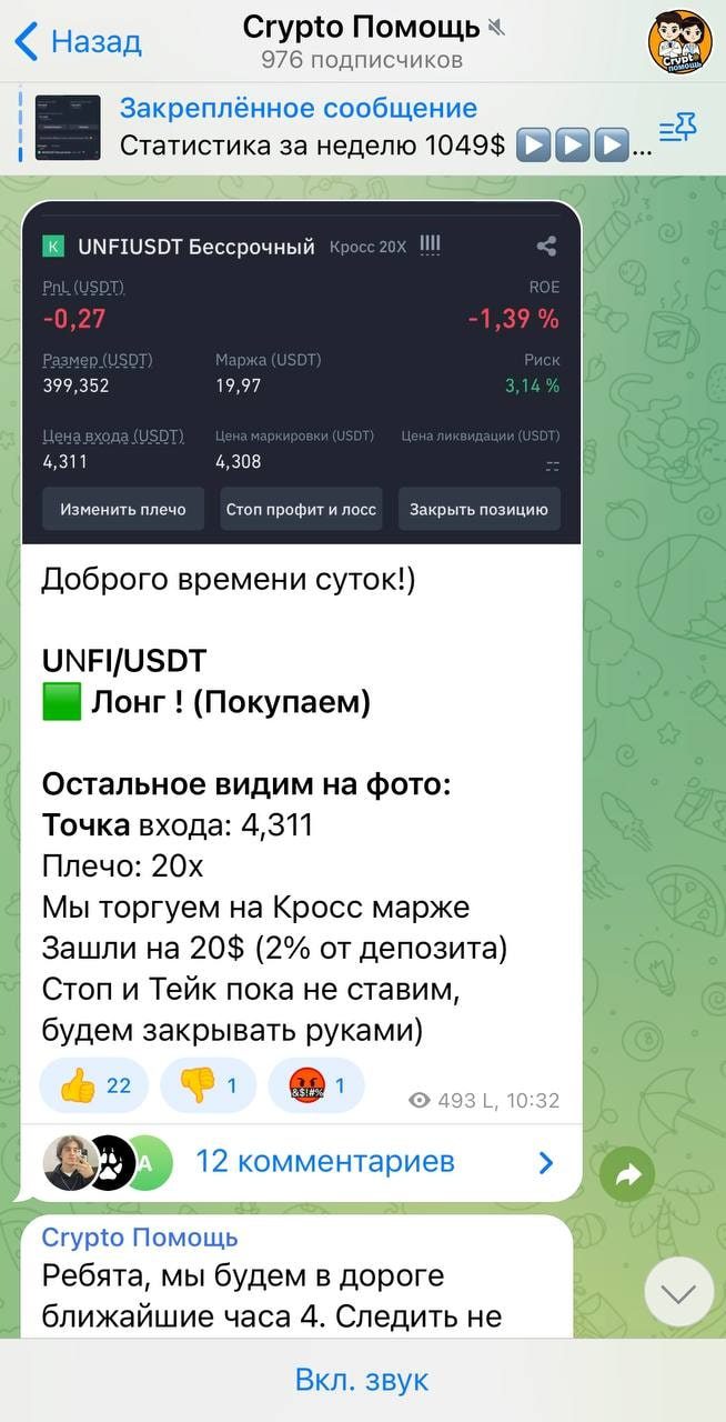 Crypto Помощь — Telegram-канал, ведомый неизвестным трейдером, который утверждает, что его специализация — работа с криптовалютами. Основной предлагаемой услугой являются индивидуальные консультации. Проверить профессионализм этого трейдера невозможно, и, несмотря на наличие статистики на канале, она является поддельной.