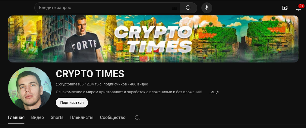У админа есть еще ютуб-канал. Он создан 9 января 2022 года. Суммарная активность несколько больше, чем в телеграме — свыше 258 тысяч просмотров за почти 2 года. Подписчиков свыше 2 тысяч человек. Блок с отзывами о Crypto Times Богдан Крайнов не разместил.