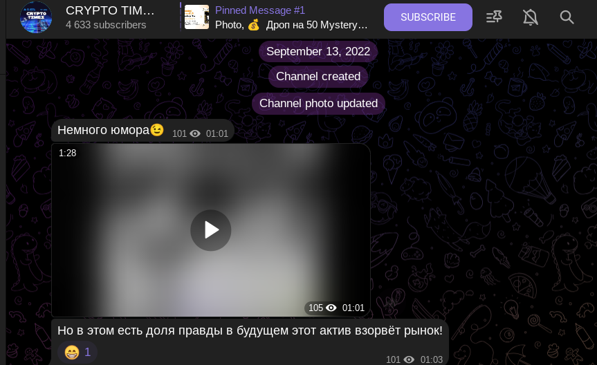 Вещание про заработок на «темках» и инвестициях в рамках телеграм-канала началось 13 сентября 2022 года. Комментарии к первой публикации закрыты, да и особого смысла она не несет. Вместо знакомства Богдан опубликовал непонятное видео. Даже намека на отзывы про Crypto Times мы не нашли. По всей видимости работать с репутацией админ не желает.