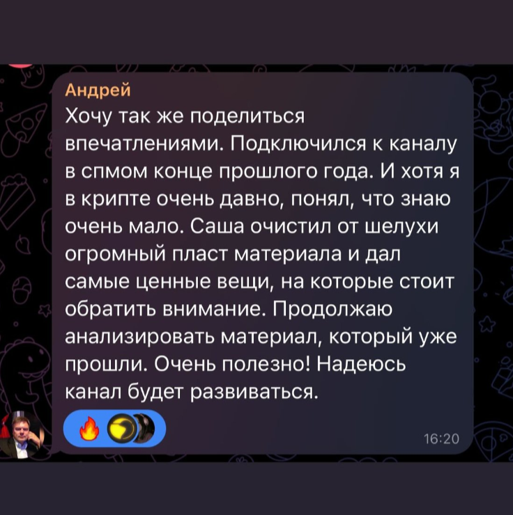 Для повышения доверия к обучению автор приводит отзывы о Crypto Volium в социальных сетях. К примеру, в Телеграмме для этого создан целый раздел, где приводятся скрины с переписок. В них клиенты в один голос хвалят трейдера и качество его курсов.