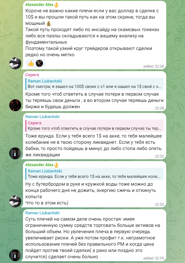 В Телеграмм-чате также можно найти мнения учеников, но они в большей части касаются обсуждения сделок. Клиенты делятся опытом и задают вопросы.