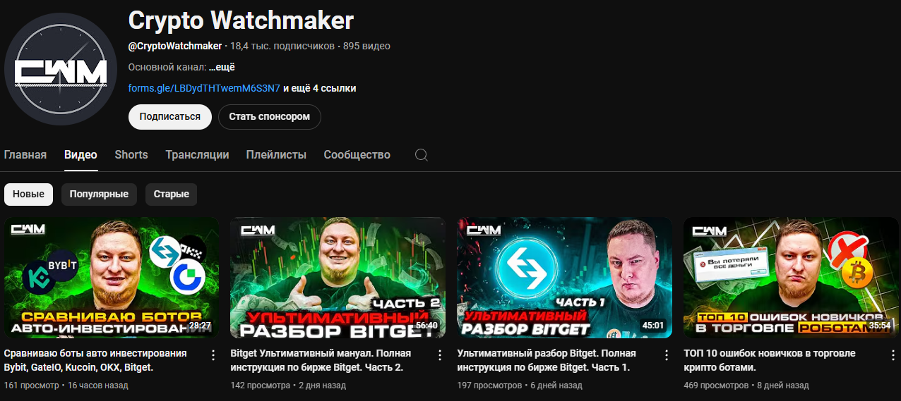 • на ютуб-канале Crypto Watchmaker подозрительно низкая активность при 18 тыс. подписчиков, возможно, автор использовал накрутку;