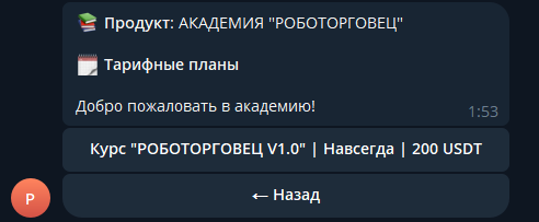 Другой услугой трейдера является некая академия “Роботорговец”. Доступ к ней приобретается через телеграм-бот Cwm Robo Bot. Однако здесь даже нет подробных сведений об обучении. Из названия понятно, что курс посвящен торговле с помощью роботов, тем не менее это очень расплывчато, неизвестно даже время прохождения данного мероприятия. Информация есть лишь о цене в 200 USDT. Отдавать столько за продукт совершенно непонятного содержания – не лучшая идея.