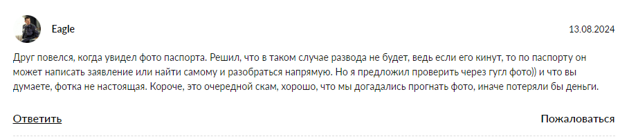 • отрицательные отзывы реальных инвесторов;