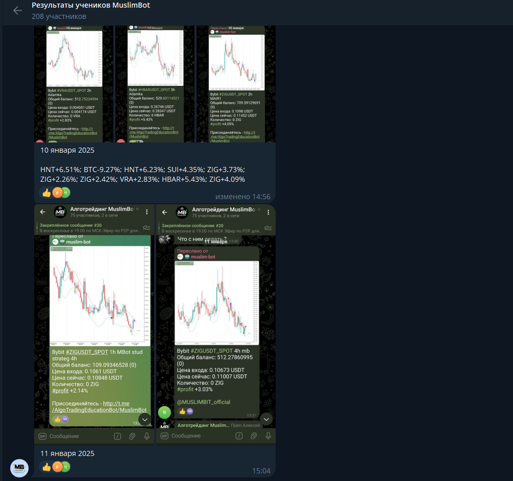 У Крипто Халял ру также есть отдельный канал, где публикуются результаты учеников, но тут тоже все неоднозначно. Назвать это полноценными результатами нельзя. По сути, все содержание сообщества – это отдельные сделки, которые, конечно, иногда приносят доход. Общую картину определить невозможно, т.к. неудачи здесь никто публиковать не собирается.