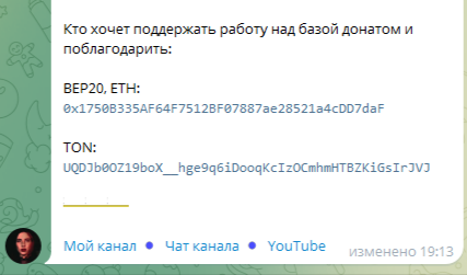 Своим подписчикам автор предлагает отблагодарить ее, отправив донат на один из криптокшельков.