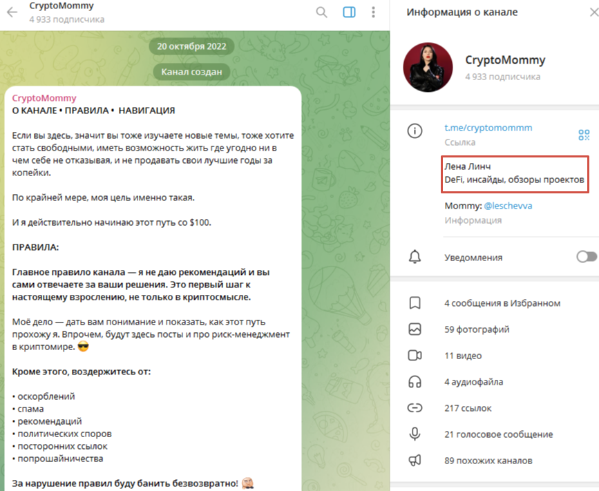 Обзор телеграм-канала CryptoMommy, анализ деятельности и отзывы Лене Линч