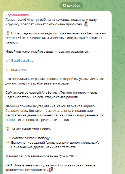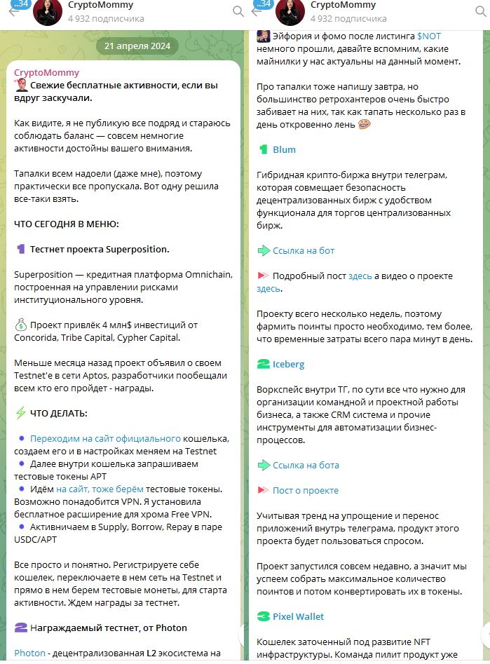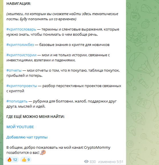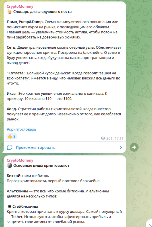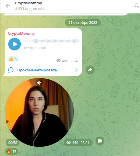 Деятельность телеграм-канала CryptoMommy