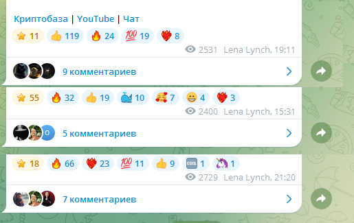 В телеграмм-канале CryptoMommy 5 тысяч подписчиков, около 3 тысяч просмотров и более сотни реакции на публикациях. Комментарии здесь оказались открыты, но оставляют их очень мало.