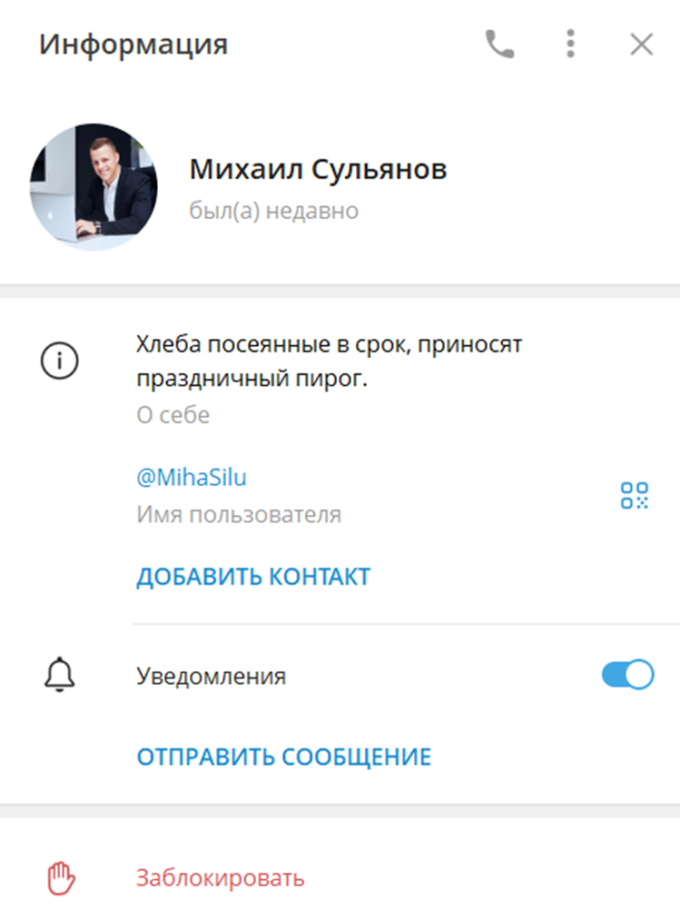 Главная деятельность трейдера Михаила Сульянова – работа в Тг канале. Там автор размещает статистику рынка криптовалют, осуществляет торговые сессии. Трейдер отмечает, что для получения прибыли требуется регулярный анализ графиков. В случае сотрудничества с ним на торговлю уходит якобы по полчаса в день. Все это подозрительно – слишком мало времени уделяется работе. Область инвестиций рискованна, при этом автор отмечает обратное. По его словам, пользователи смогут получить информацию о: