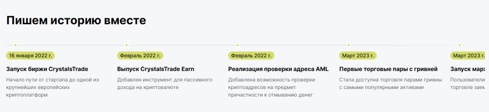 Crystals trade – современная площадка для торговли криптовалютами. В дорожной карте проекта сказано, что он был запущен в 2022 году и базируется в Европе. Если верить статистике на сайте, то суточный объем торгов достигает 10 миллионов долларов.