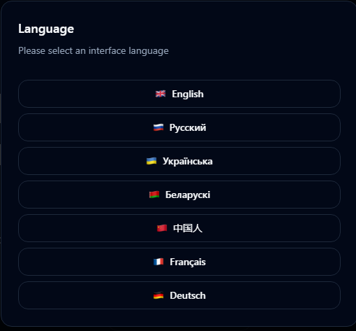 На выбор доступны русский, украинский, английский, белорусский, французский и немецкий языки.