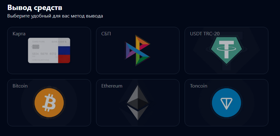 Вывести доход можно на карту, с помощью СБП и в крипту. Минимальная сумма — 2000 руб.