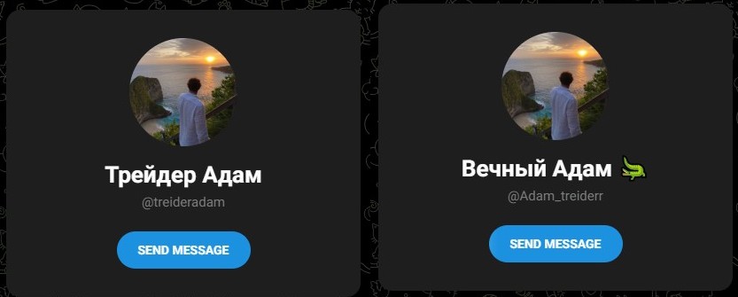Главное действующее лицо проекта – анонимный персонаж, который называет себя Адам Daily Trader или «Вечный Адам». Он использует несколько аккаунтов в Telegram, включая @Adam_treiderr и @treideradam, вероятно, чтобы заметать следы и уходить от блокировок. На аватарке – стандартная фотография «успешного парня» на фоне красивого пейзажа. Никаких реальных доказательств личности, торгового опыта или тех самых «миллионных» профитов, о которых он пишет, не существует.