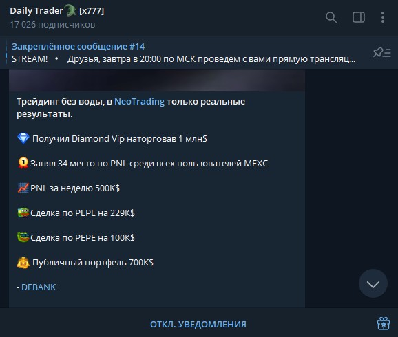 Обзор канала в Телеграмм Daily Trader x777: отзывы и услуги проекта «Дейли Трейдер»