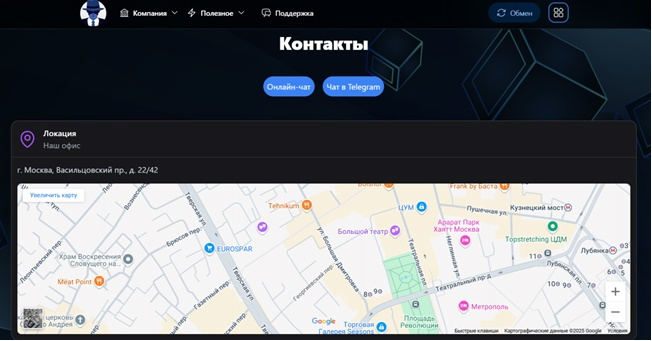 На площадке Darker Trade указано местонахождение фирмы. Зарегистрирована компания в Москве, Васильцовский пр., д. 22/42. Но проблема в том, что данного адреса в г. Москва нет. Владельцы обменника Darker Trade сообщают несуществующий адрес. Что касается номера телефона, опубликованного на сайте, то он недоступен. Ни один адрес электронной почты не является действующим.