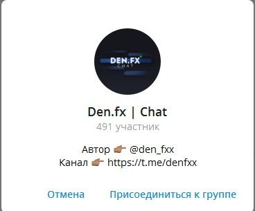 В группе отключены комментарии. Помимо основного канала тут присутствует еще отдельный чат. Den FX Chat бесплатный и насчитывает до 500 человек.