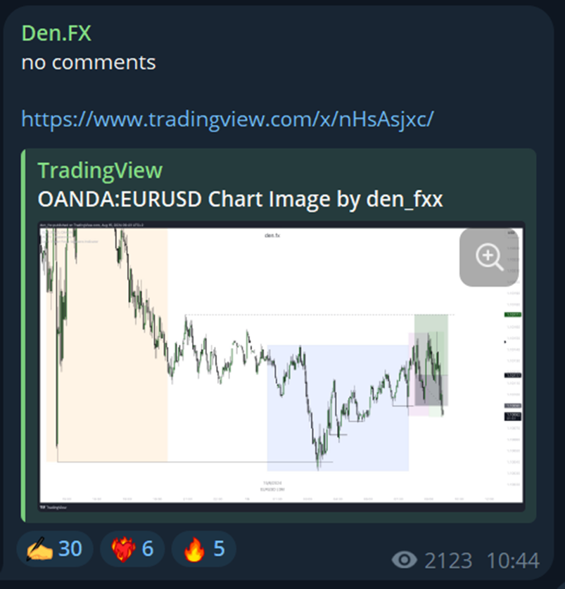 Публикации в телеграмм-канале DenFxx во многом напоминают личный блог, который ведется человеком для хорошо его знающих людей. Практически все посты связаны с трейдингом, планами автора, трансляциями и прочими подобными вещами. Den Fx старается общаться со своей аудиторией, задает вопросы и может отвечать в комментариях интересующимся людям.