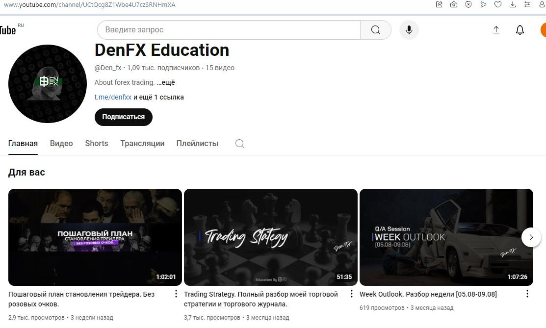 На ютуб-канале, который называется DenFX Education, насчитывается около 1 тысячи подписчиков. Несмотря на то, что зарегистрирован он в 2019 году, видео начали выкладываться только 3 месяца назад. На 1 марта 2025 года насчитывается 15 роликов.