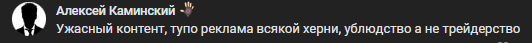 Еще есть отзывы от людей по поводу содержания контента. Им не нравится реклама скам проектов и призыв людей участвовать в мутных схемах.