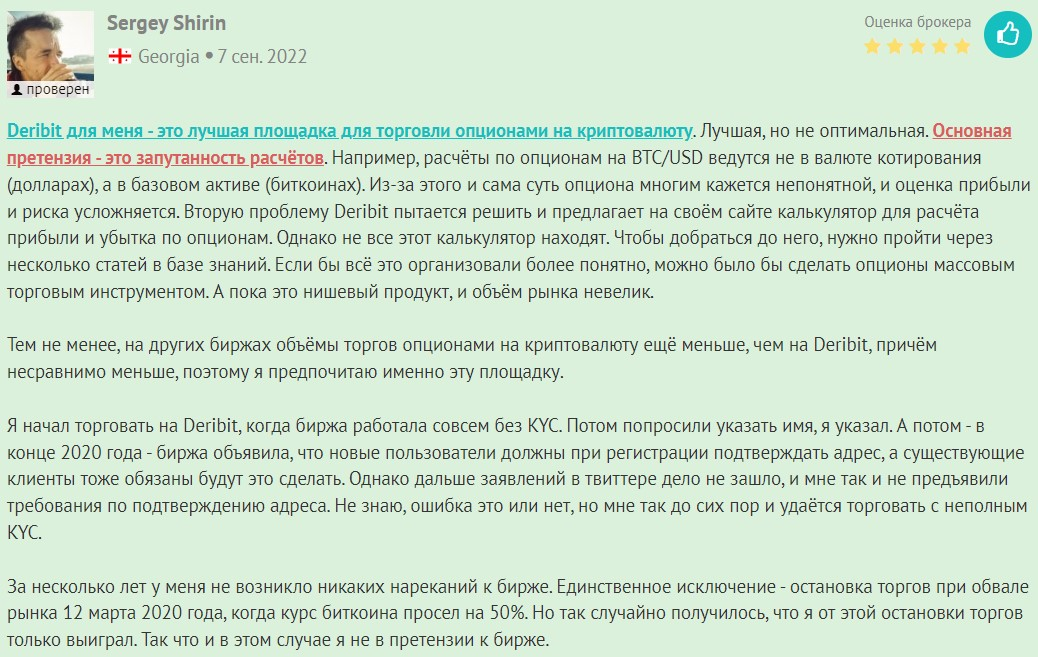К бирже Дерибит относятся неоднозначно: есть те, которые довольны платформой и называют ее лучшей для торговли опционами.
