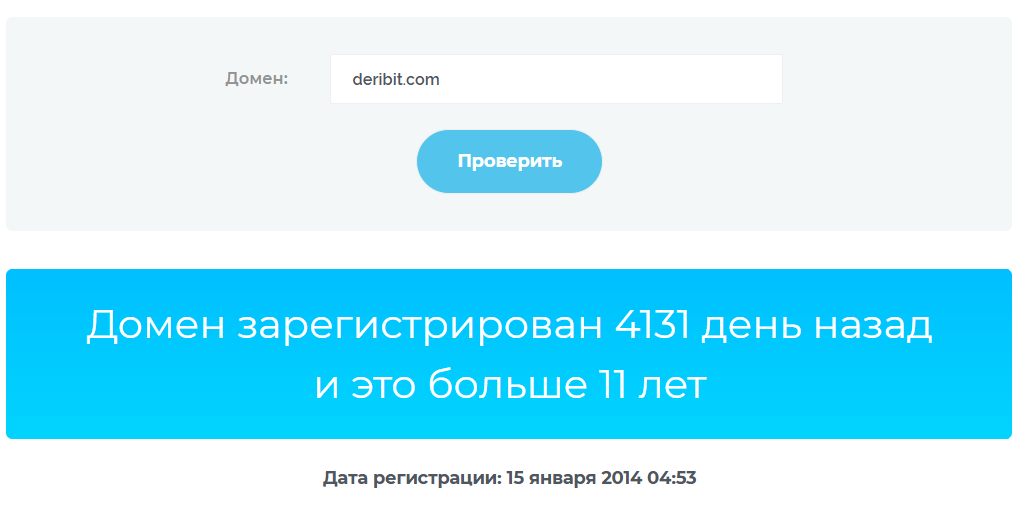Проверка показала, что биржа Дерибит существует с 2014 года и не является фирмой-однодневкой. При этом последнее время часто случаются проблемы с доступом к сайту.